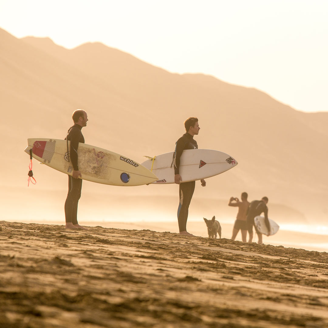 Gemiddelde golfhoogte, 100 procent zon garantie, toeristen van over de hele wereld en romantische zonsondergang maken Fuerte en Lanzarote de ideale plek om te leren surfen of je surfen te verbeteren.